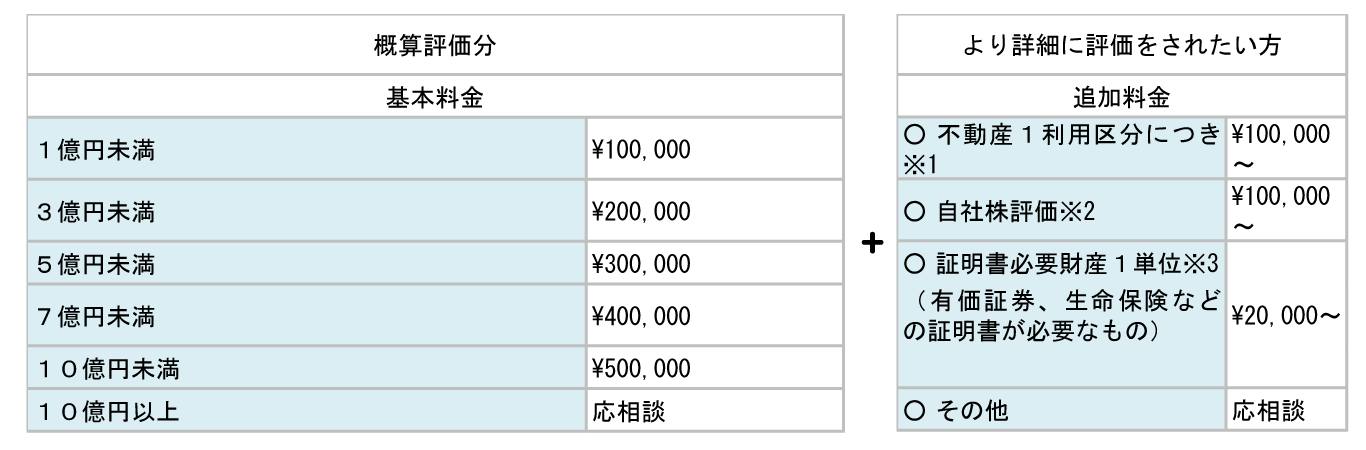 自社株評価について、不動産所有の場合は追加料金の不動産評価分の上乗せがあります。(※2)