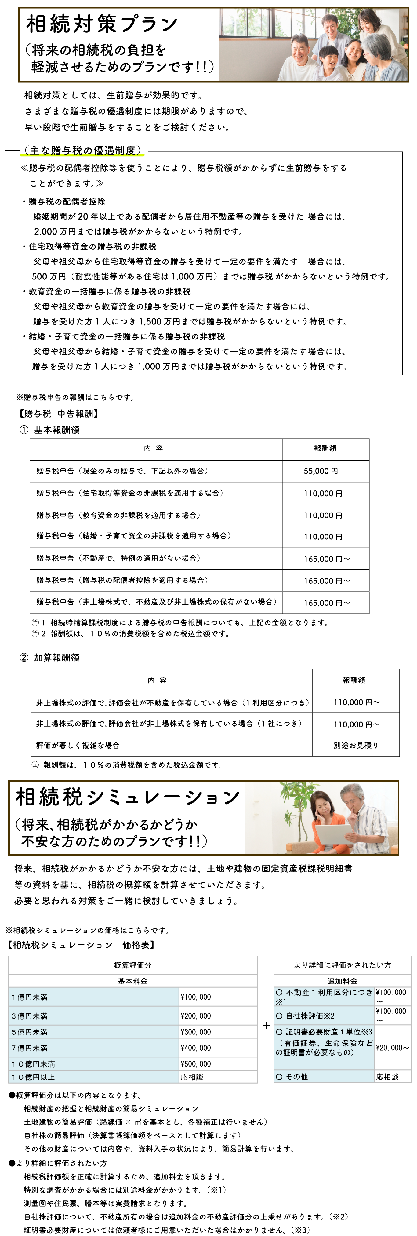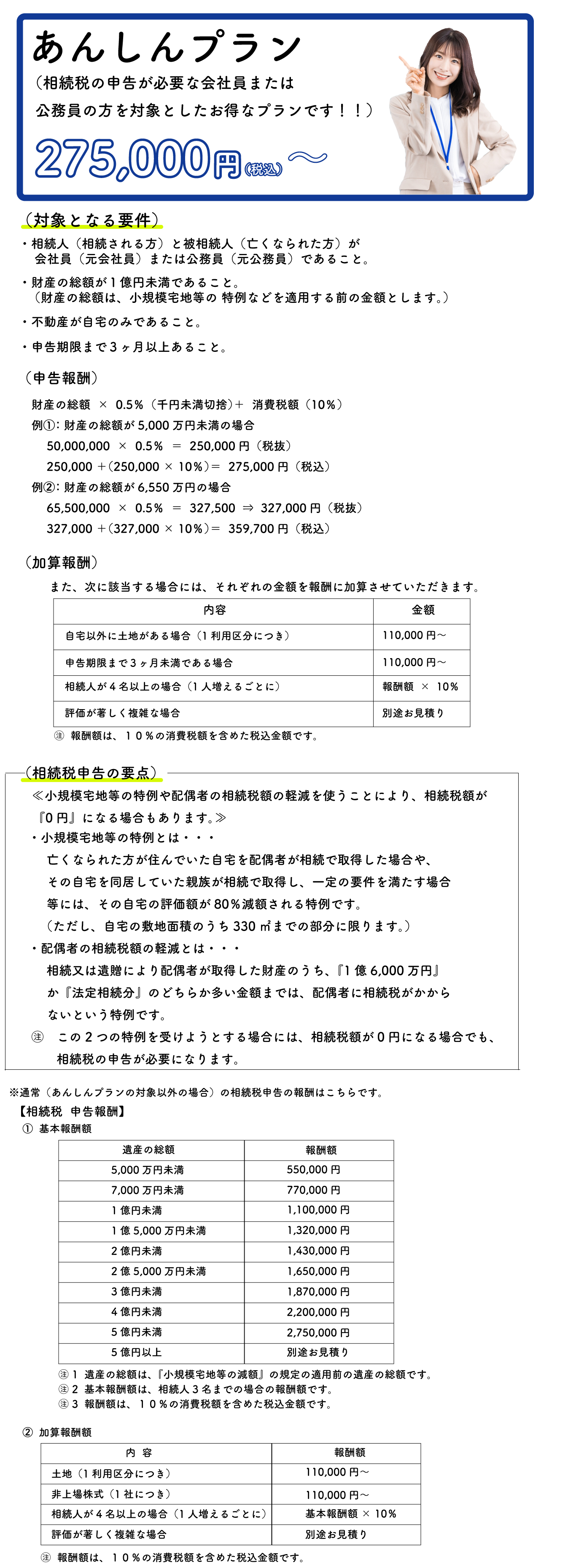 ●通常(あんしんプランの対象以外の場合)の相続税申告の報酬はこちらです。